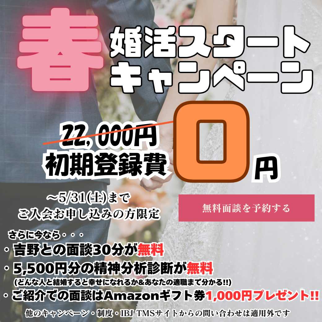 春の特別婚活キャンペーン中!!【沢山の無料が今だけ!!】