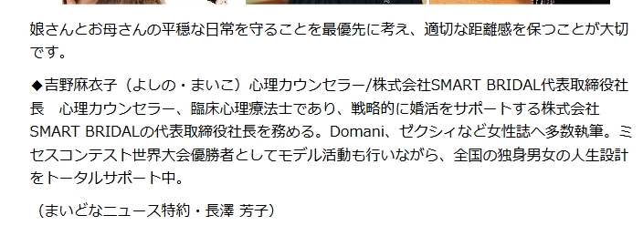恋愛婚活心理学者/株式会社SMART BRIDAL代表取締役社長 心理カウンセラー、臨床心理療法士であり、戦略的に婚活をサポートする株式会社SMART BRIDALの代表取締役社長を務める。Domani、ゼクシィなど女性誌へ多数執筆。ミセスコンテスト世界大会優勝者としてモデル活動も行いながら、全国の独身男女の人生設計をトータルサポート中