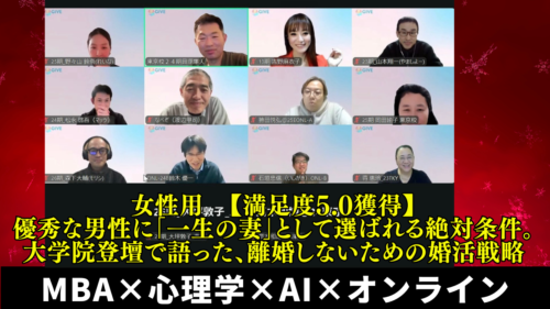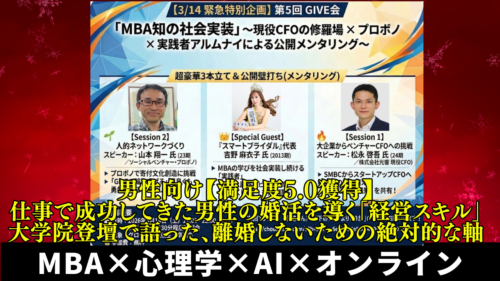 男性用【満足度5.0獲得】仕事で成功してきた男性の婚活を導く「経営スキル」。MBA登壇で語った、離婚しないための絶対的な軸