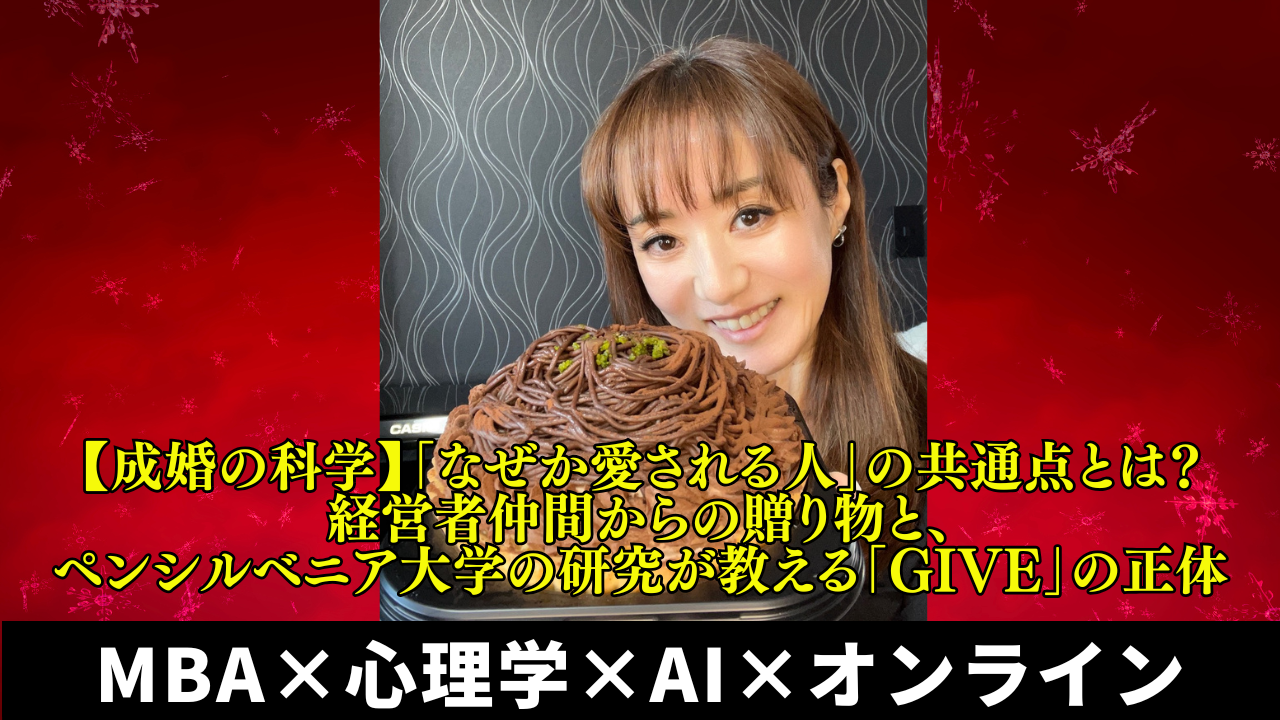 【成婚の科学】「なぜか愛される人」の共通点とは?経営者仲間からの贈り物と、ペンシルベニア大学の研究が教える「GIVE」の正体